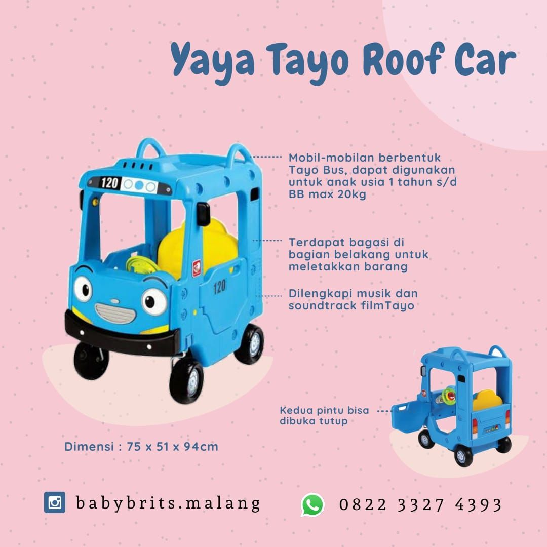 - Mobil-mobilan berbentuk Tayo Bus, dapat digunakan untuk anak usia 1 tahun s/d BB max 20kg.
